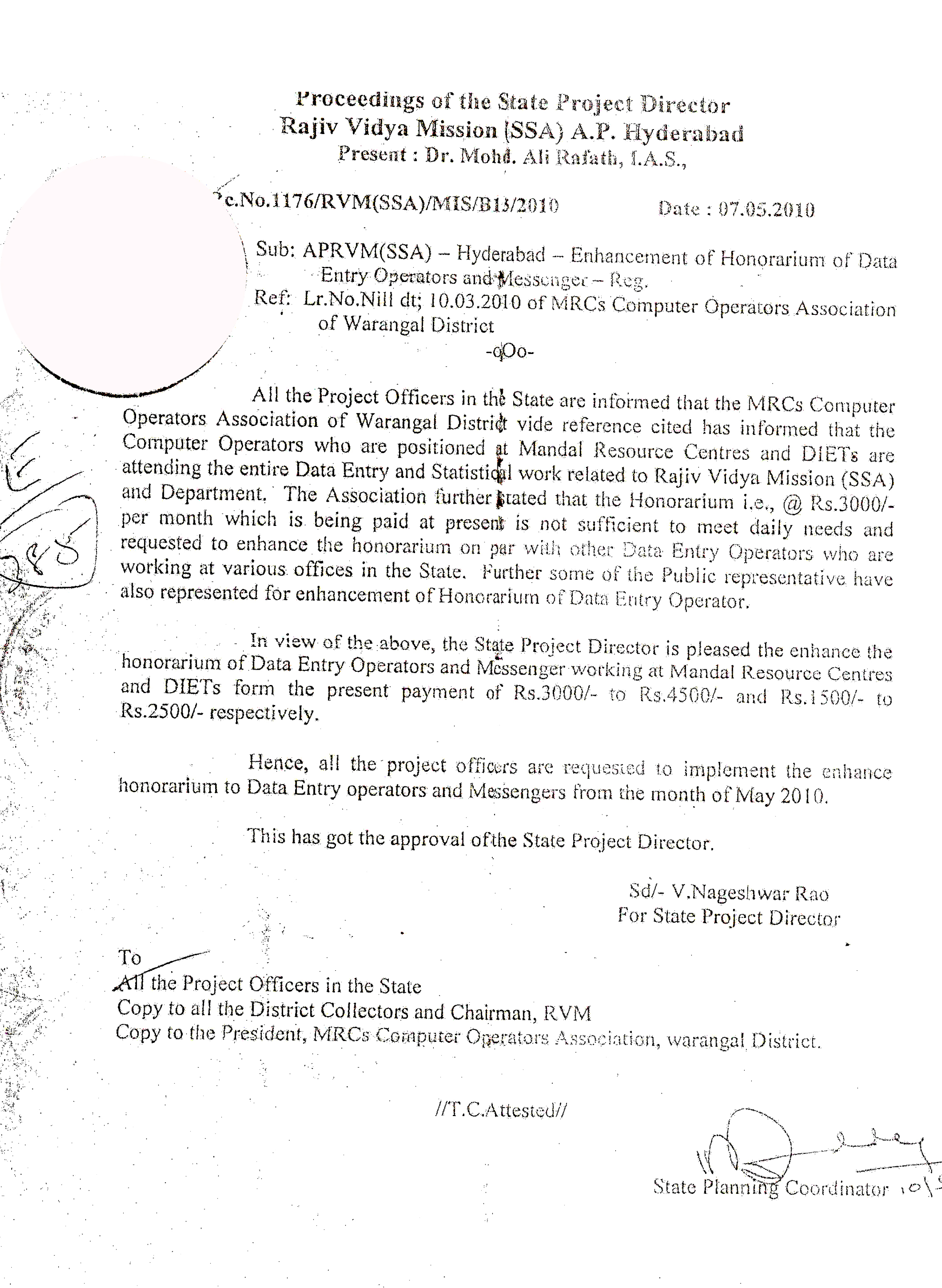 Enhance Salary of MRC Staff (w.e.f.01-06-2014)